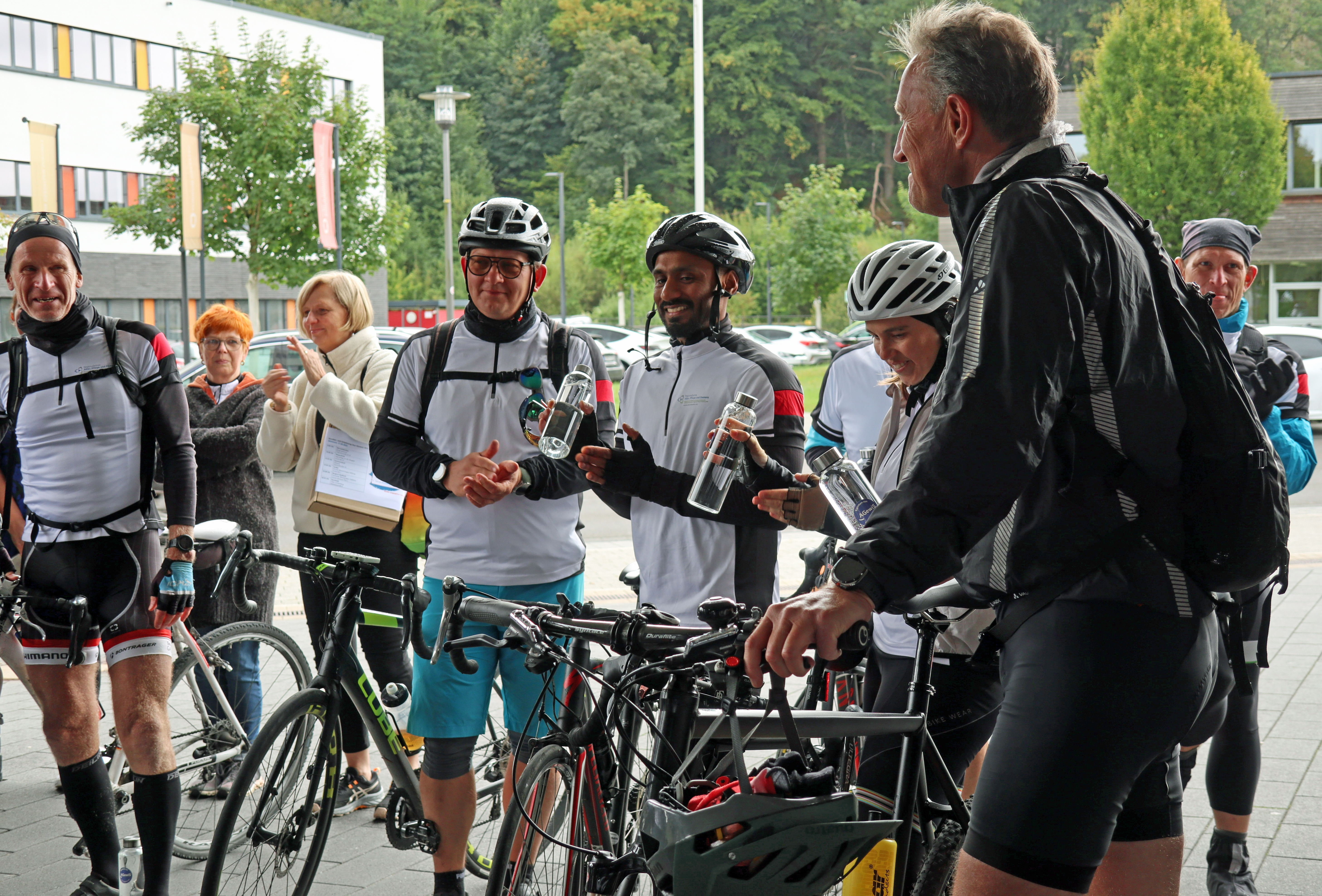 Die schweißtreibende Rundkurs von Burscheid nach Gummersbach (und zurück) wurde durch einen begeisterten Empfang mit Erfrischungen an der AGewiS auf dem Steinmüllergelände gewürdigt.