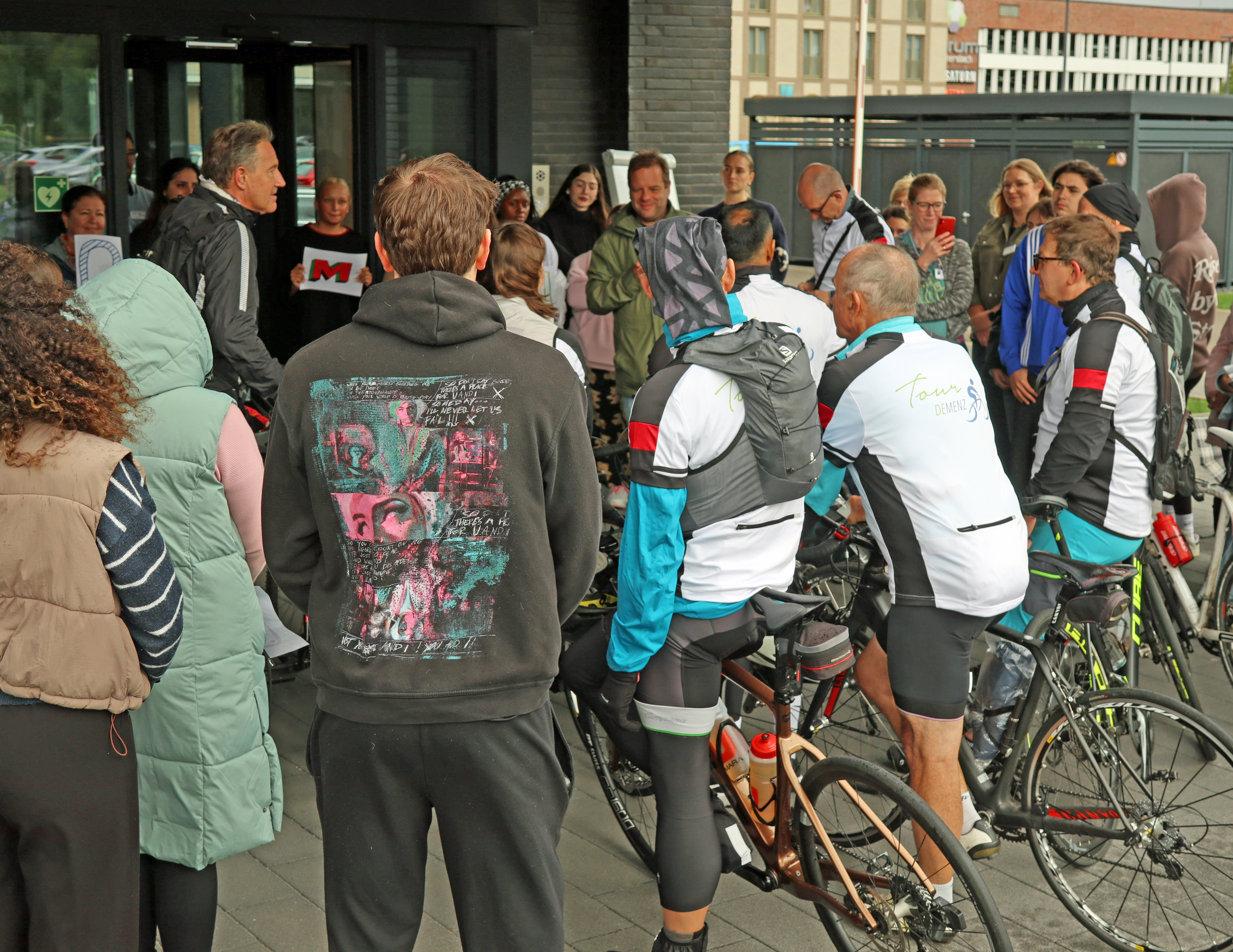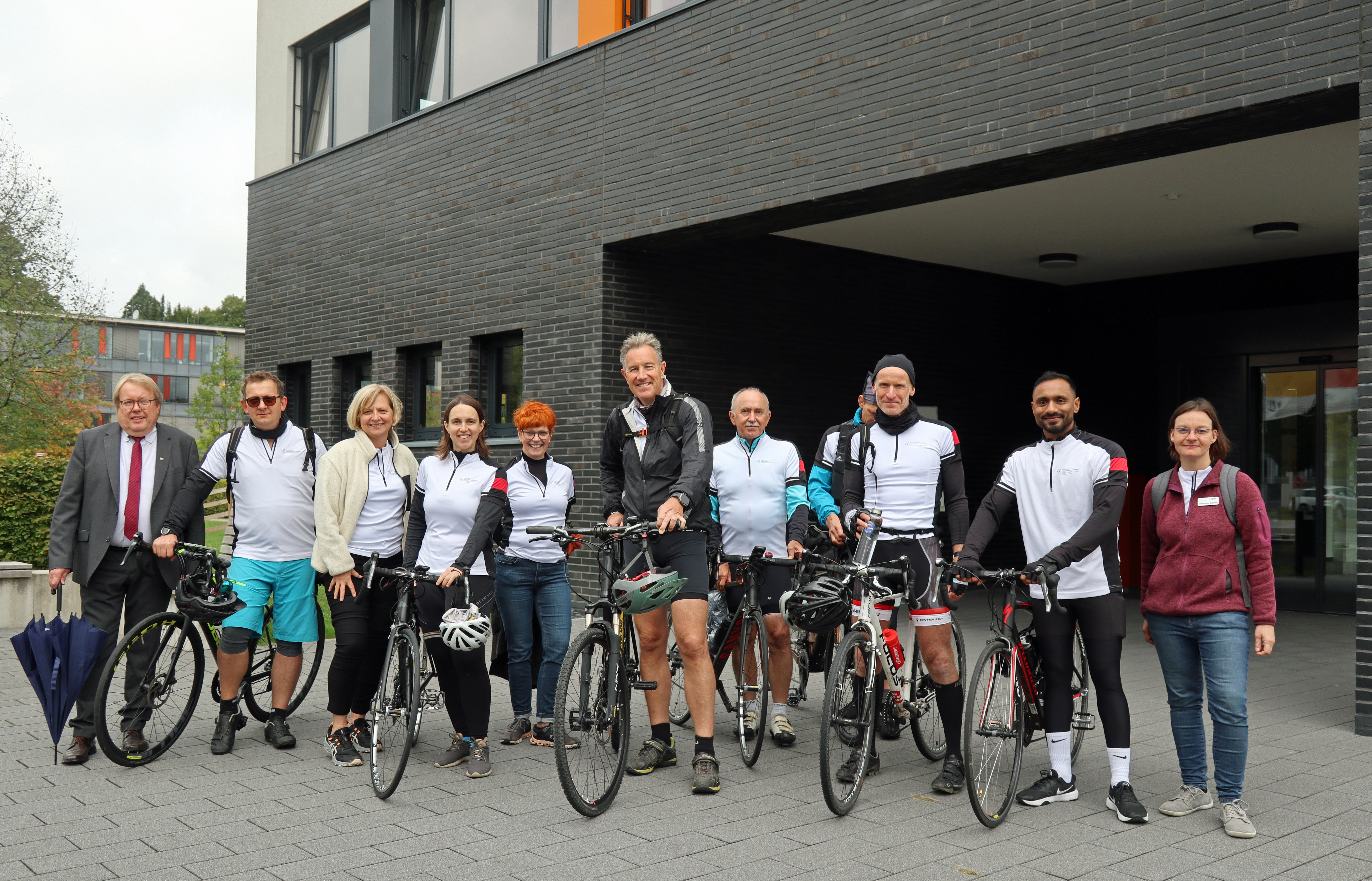 Während Ralf Schmallenbach die Fahrradgruppe im letzten Jahr noch begrüßt hatte, setzte der passionierte Radsportler in diesem Jahr seine Ankündigung um, "einmal selbst für den guten Zweck in die Pedale zu treten!" An seiner Seite radelte Arnd Bader, Sozialwissenschaftler des Regionalbüros Bergisches Land, der seit acht Jahren die "Tour Demenz" organisiert und im Rahmen des Welt-Alzheimer-Tags am 21. September über das Krankheitsbild Demenz aufklärt "und um Sorgen und Hemmungen im Umgang mit Betroffenen zu nehmen."
