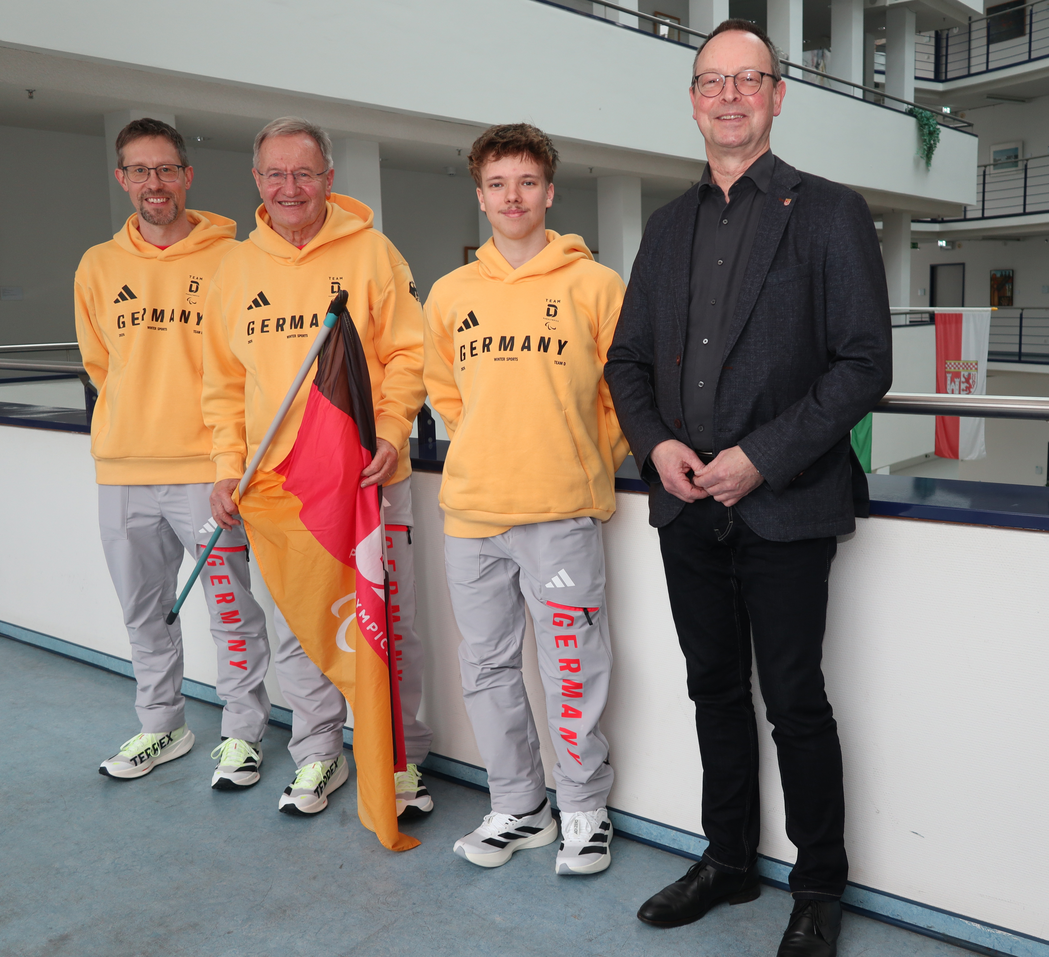 Oberbergischer Kreis. In der Vorfreude auf die Paralympischen Winterspiele in Norditalien (6. bis 15. März 2026) hat der Allgemeine Vertreter des Landrats, Stefan Heße, die oberbergische Delegation nach Cortina d’Ampezzo verabschiedet: Para Eishockey-Nationalspieler Jano Bußmann; Friedhelm Julius Beucher, Ehrenpräsident des Deutschen Behindertensportverbandes - beide aus Bergneustadt - sowie Kevin Müller aus Engelskirchen-Ründeroth, stellvertretender Pressesprecher des Teams Deutschland Paralympics.