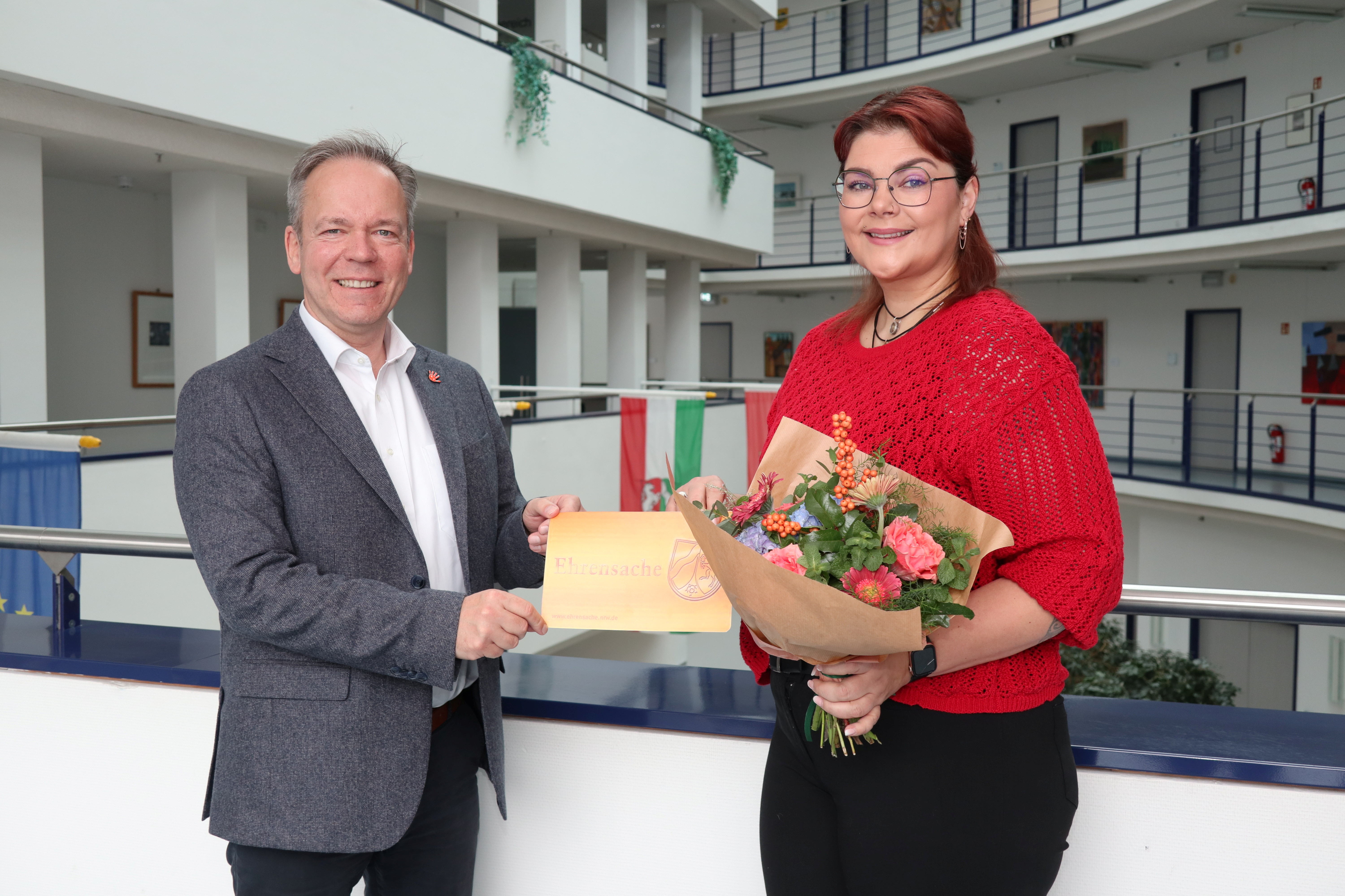 Oberbergischer Kreis. Landrat Klaus Grootens hat die 500. Ehrenamtskarte an Ina Hanuschik aus Gummersbach-Lieberhausen überreicht. Die Musikerin engagiert sich seit fast 10 Jahren ehrenamtlich im Fanfahrenzug Lieberhausen 1958 E.V. und leitet seit 2017 als 1. Vorsitzende den Verein, der aktuell 35 Mitglieder zählt. Seit 1. September 2017 vergibt der Oberbergische Kreis die Ehrenamtskarte des Landes Nordrhein-Westfalen. Menschen, die sich in besonderem zeitlichem Umfang für das Gemeinwohl engagieren, können damit Angebote öffentlicher, gemeinnütziger und privater Einrichtungen günstiger nutzen. Dazu zählt auch die 37-jährige Ina Hanuschik.