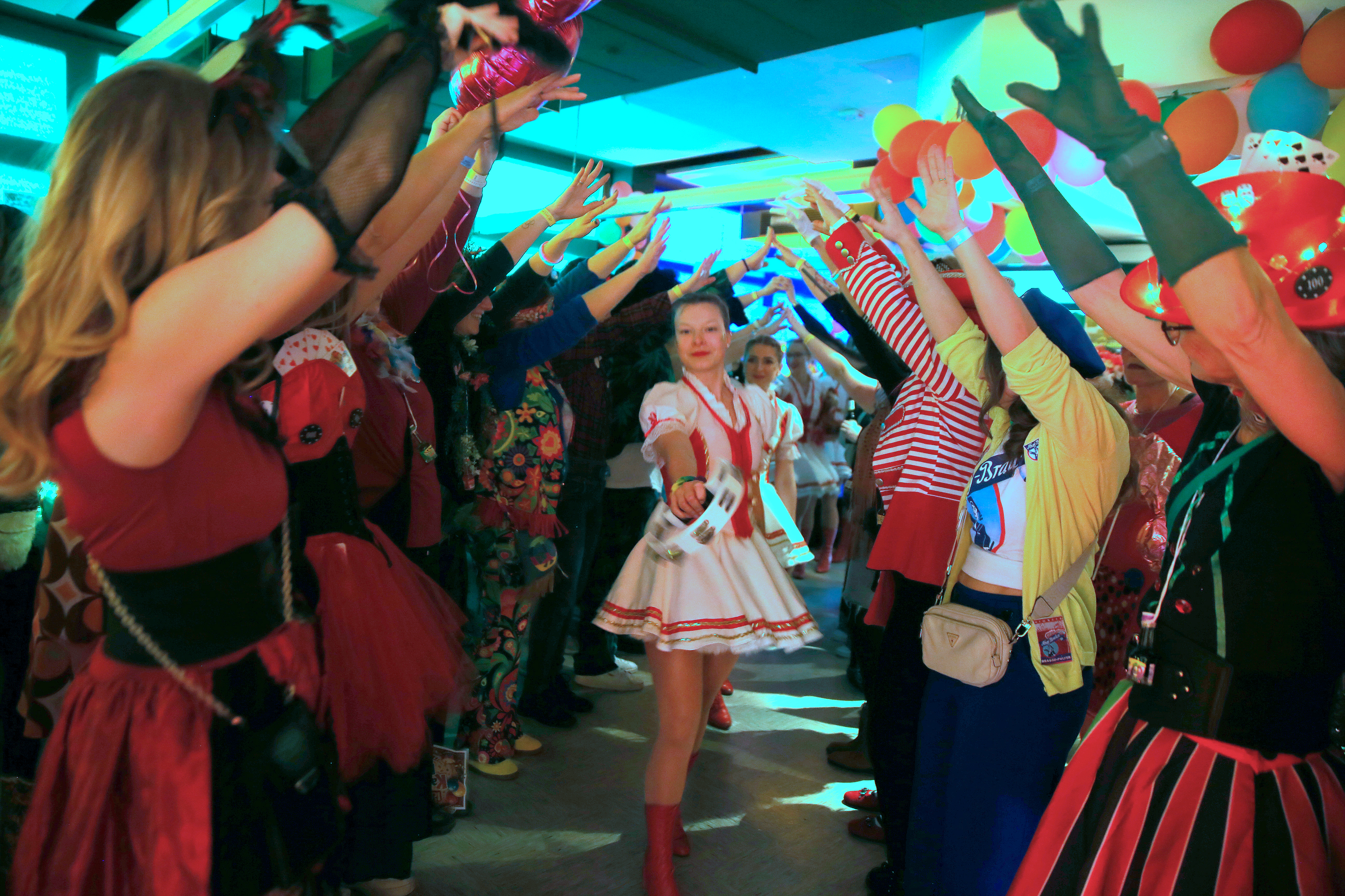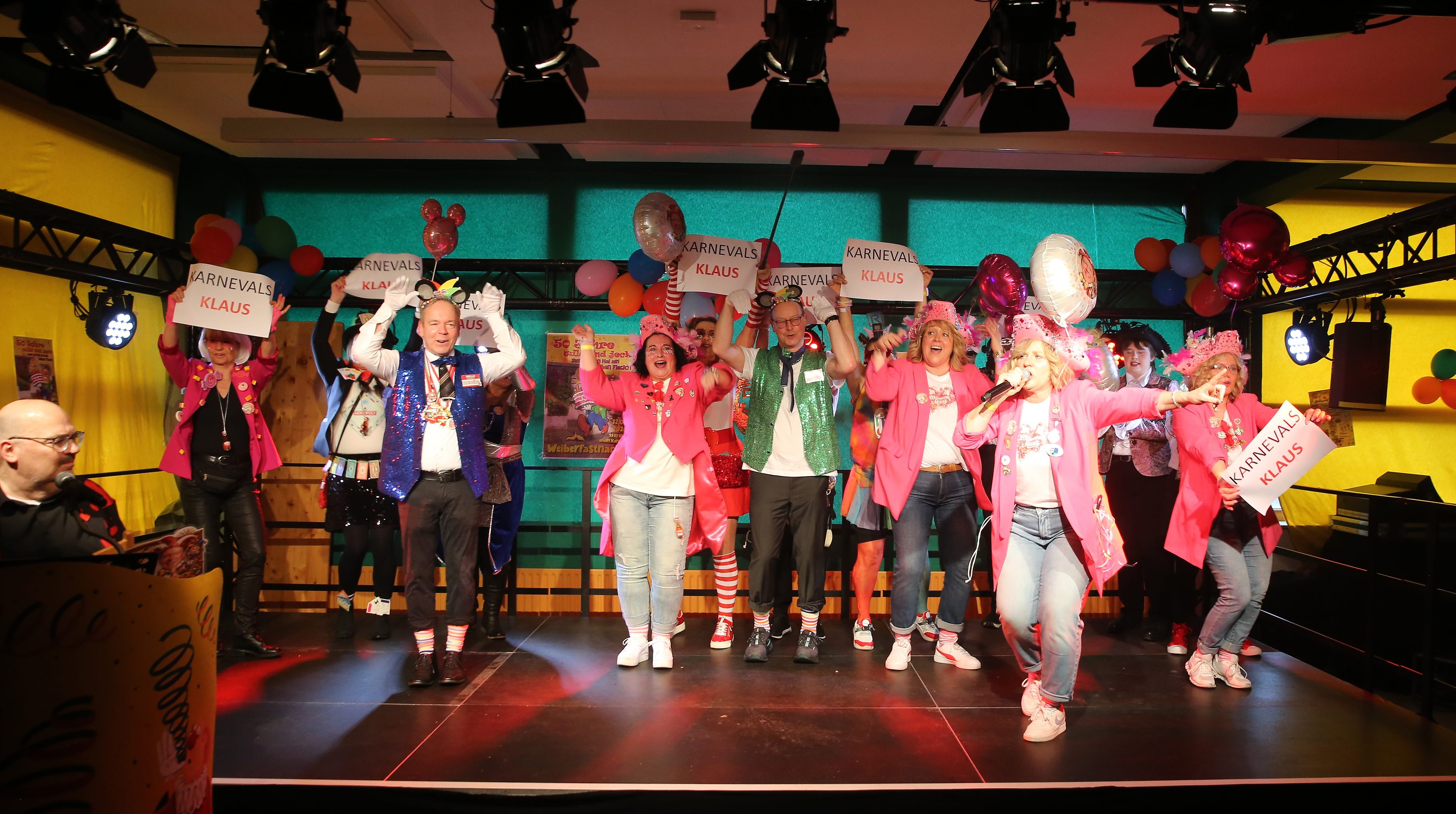 Im Tross der jecken Mitarbeitenden zog die Doppelspitze - in mittlerweile 50-jähriger Tradition - "mit Mann und Maus" zum gemeinsamen Feiern in die ehemalige Kreiskantine, wo das beliebte, hausgemachte Bühnenprogramm startete.